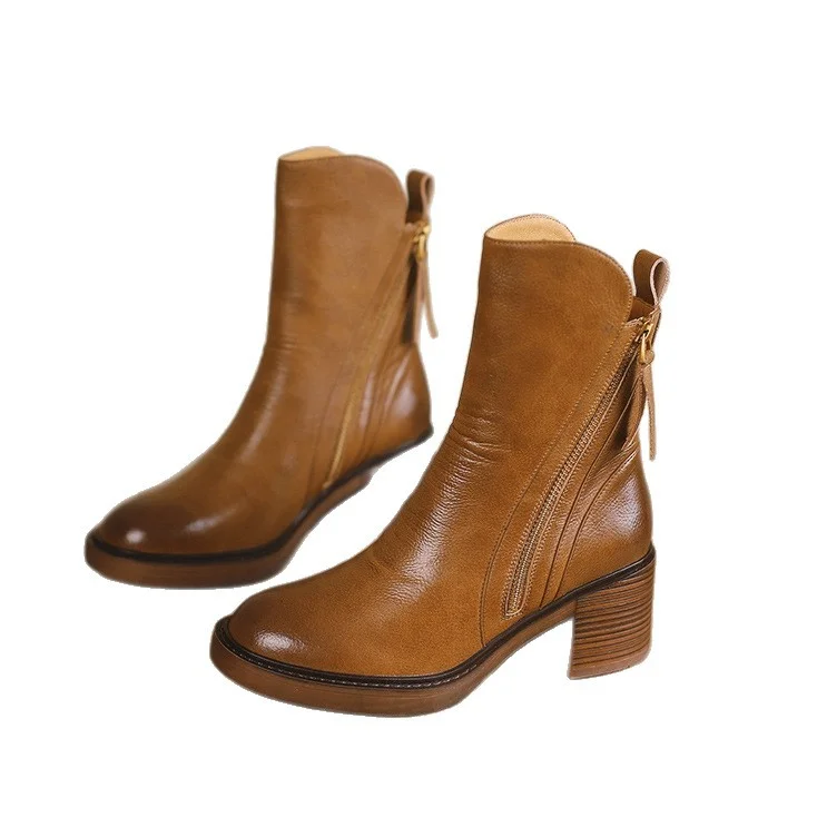 Premium Material: Crafted from high-quality genuine leather, these ankle boots ensure durability, softness, and a refined finish that improves with wear.
