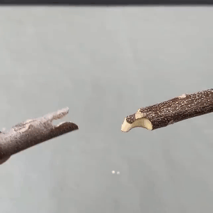 Step 2: Slide the donor stem into the groove of the stock plant, matching the cut surfaces as closely as possible. If the stock and donor plant are not the same size, match on the side only.