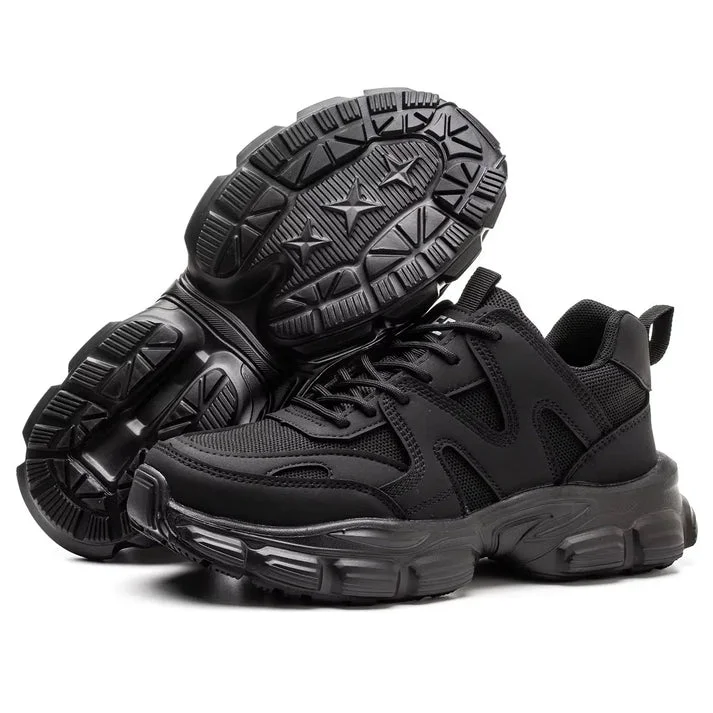 A Kevlar midsole adds exceptional puncture protection against sharp objects like glass and metal. The anti-slip rubber outsole with deep grooves ensures firm traction on slippery surfaces, while the breathable mesh upper keeps feet cool and fresh.