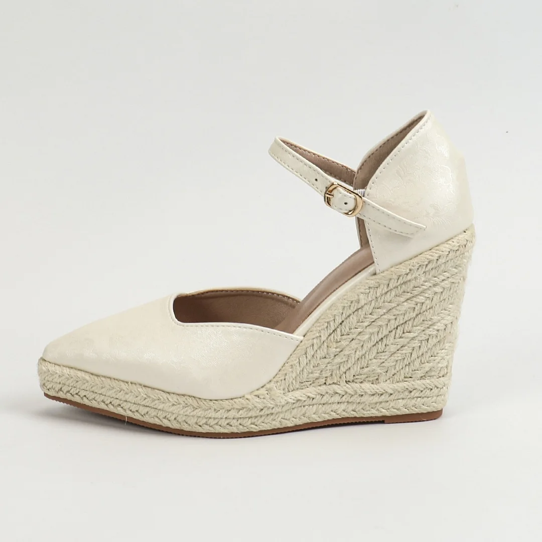 Women's Wedge Espadrille Shoes with Closed Toe and Ankle Strap